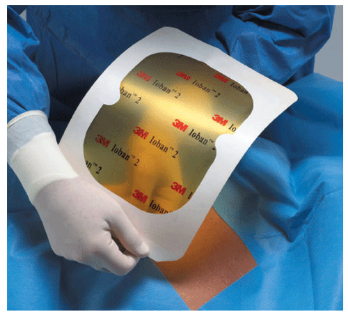 Ioban 2 - bakteriobójcza, jałowa, samoprzylepna folia operacyjna z papierem zabezpieczającym, wykonana z poliestru.